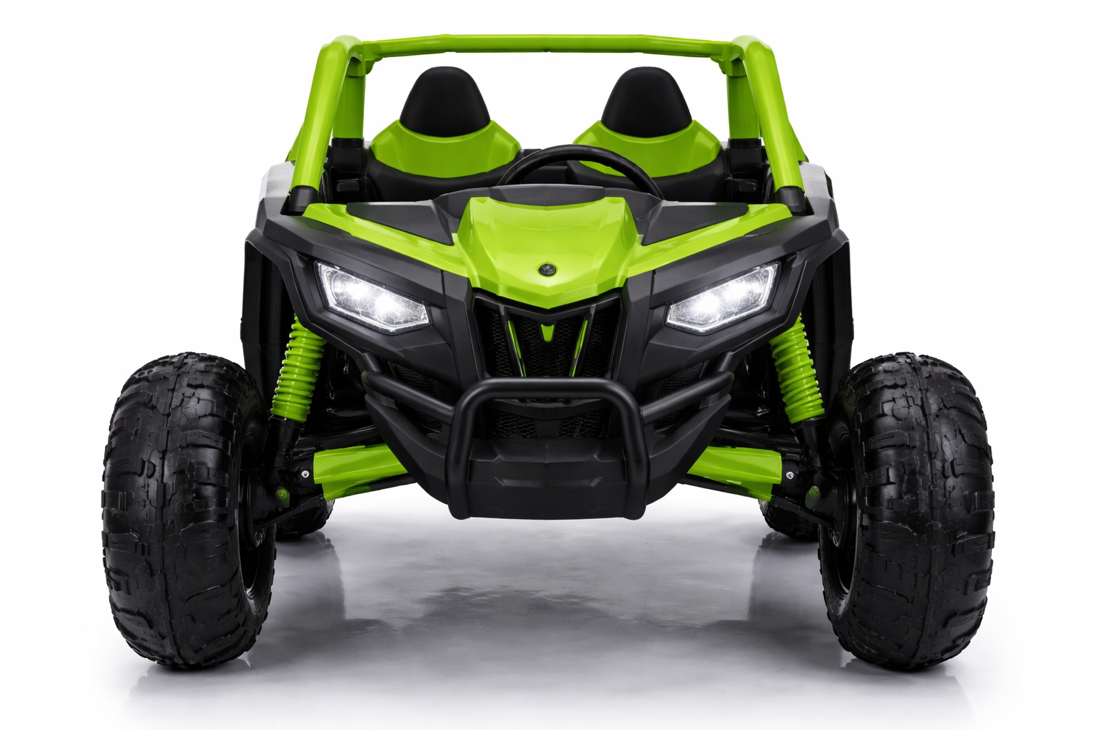 اجعل طفلك يعيش أجواء المغامرة مع سيارة الطرق الوعرة الكهربائية هذه! تصميم قوي وجذاب مستوحى من سيارات الدفع الرباعي الحقيقية لتجربة قيادة ممتعة وآمنة.